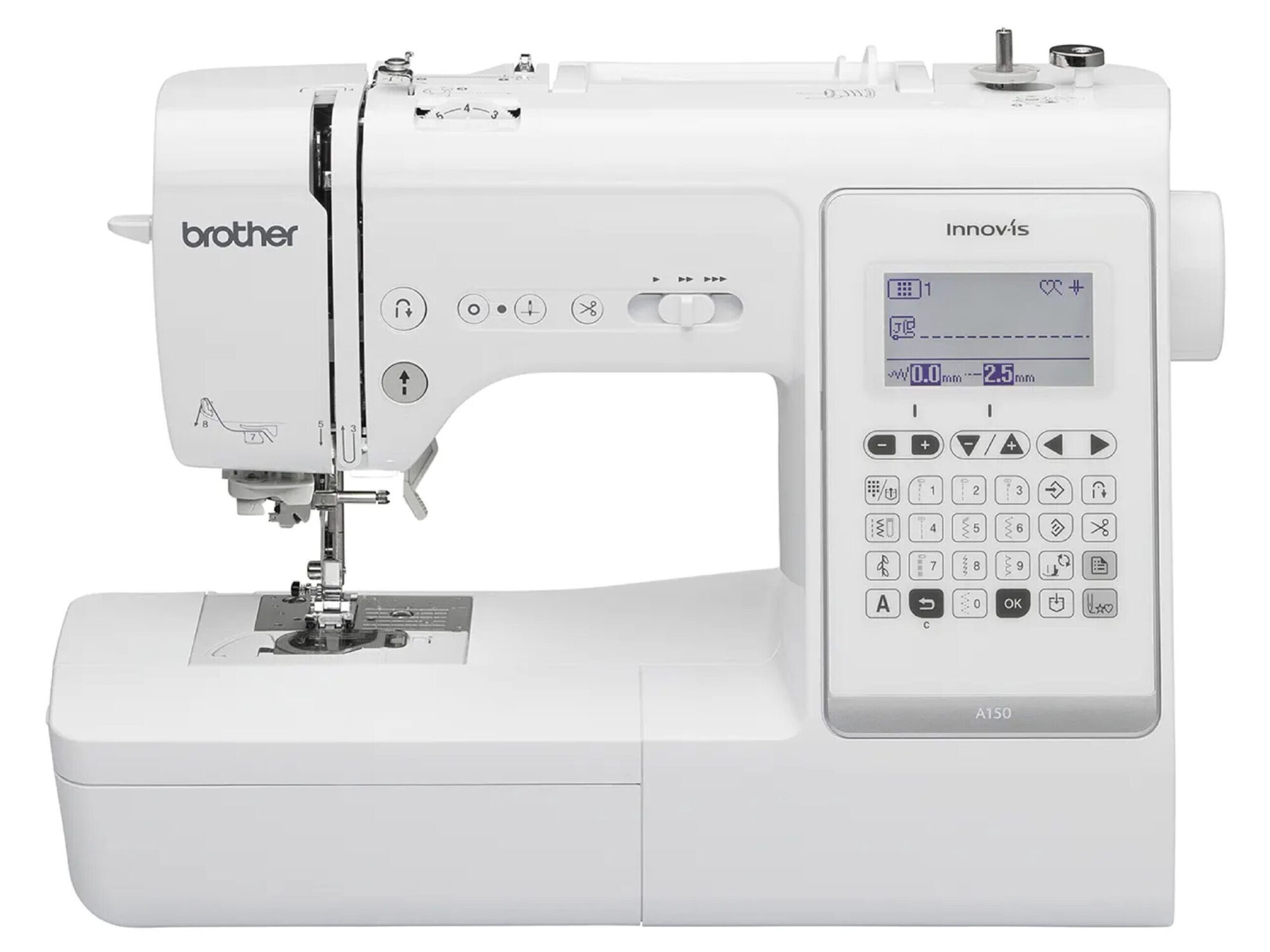 The Brother Innov-is A150 is an award-winning (iF Design Award 2019) computerized sewing machine built for creativity and precision. With an extensive range of 150 stitches, 10 one-step buttonholes, and 4 lettering styles, it is ideal for decorative stitching, garment construction, and personalizing projects. Its LCD screen, quick-set bobbin, and advanced needle threading system simplify the sewing process, making it perfect for sewists who want both functionality and ease of use. Compact yet powerful, this machine combines modern features with Brother’s trusted durability.