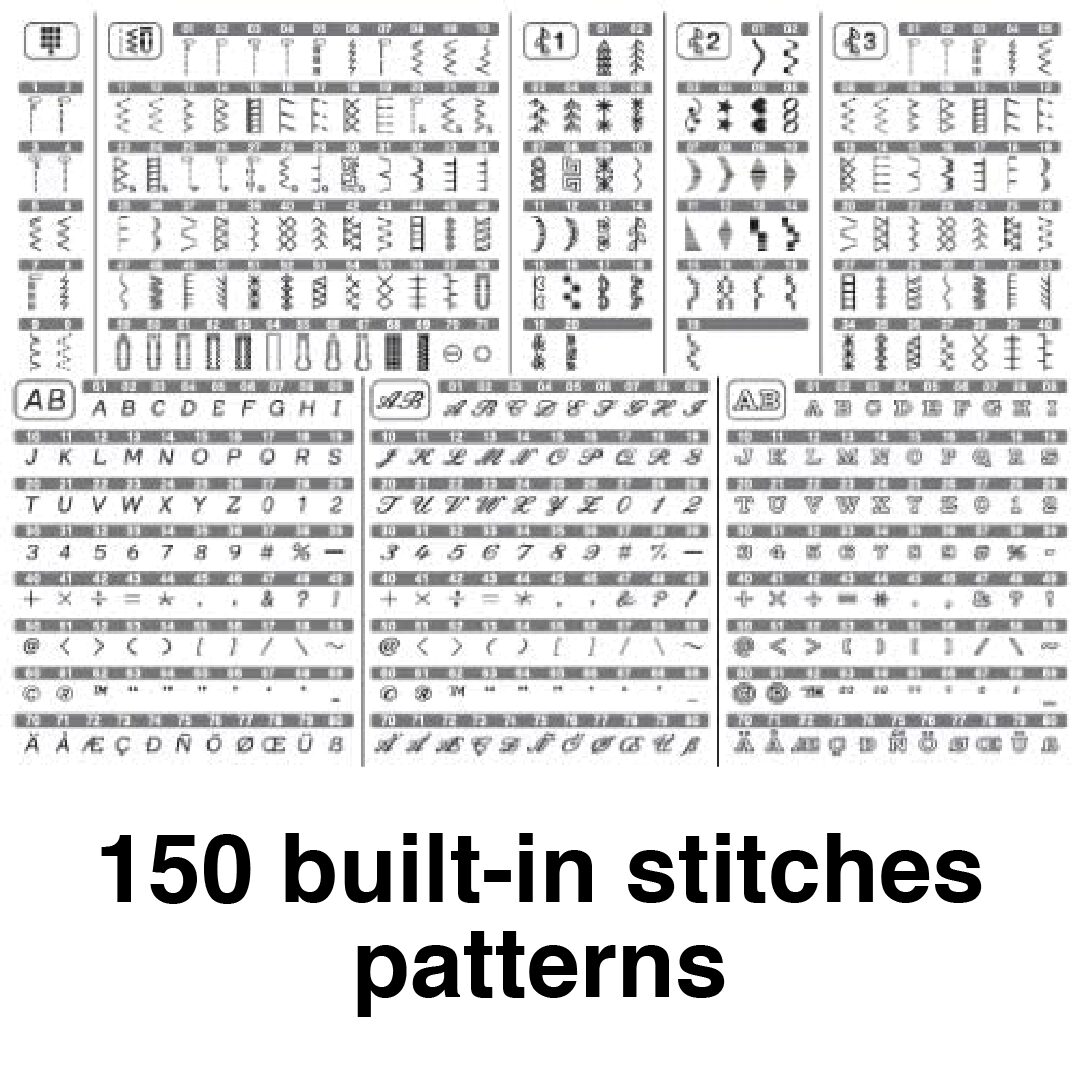 150 built-in stitch patterns, including decorative options