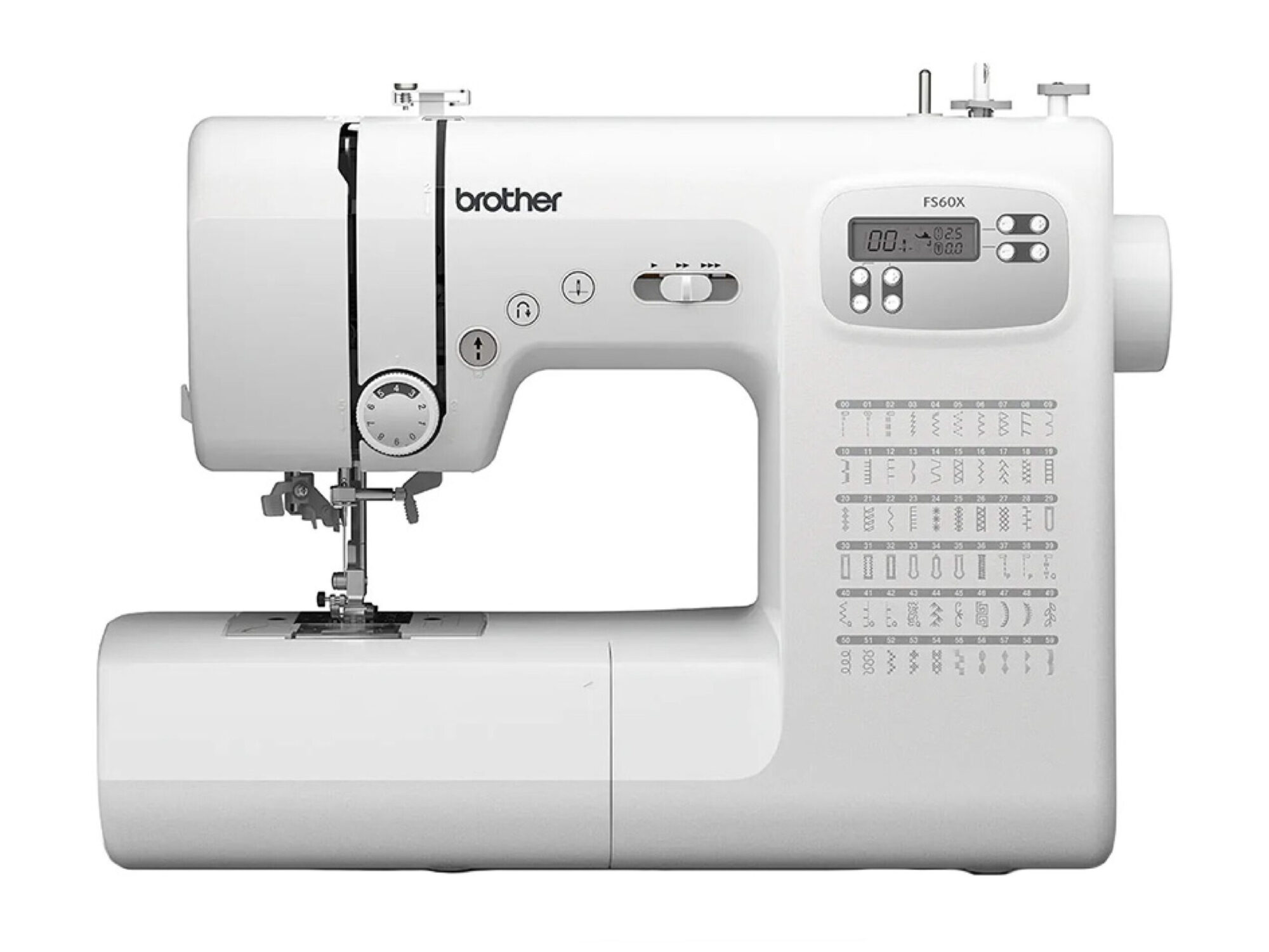 The Brother FS60X is an extra-tough computerized sewing machine built with a sturdy metal frame for long-lasting performance. Offering 60 stitch patterns and 7 one-step buttonholes, it supports a wide range of sewing projects from garments to home décor. Equipped with a built-in needle threader, quick-set bobbin, and a monochrome LCD screen, the FS60X makes sewing smooth and efficient. Its LED lighting, manual thread tension control, and easy stitch selection buttons ensure precise sewing results. With a maximum speed of 750 stitches per minute, this model is a dependable choice for creative sewists who want a balance of durability and convenience.