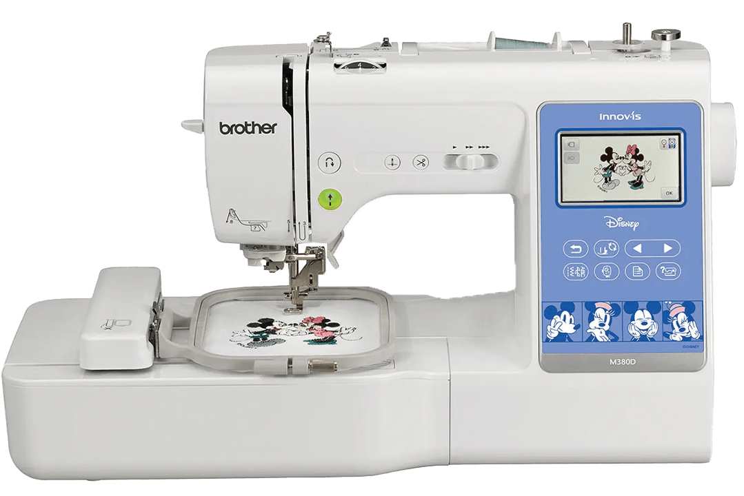 The Brother Innov-is M380D brings together sewing, quilting, and embroidery functions in one stylish and versatile machine. With 181 sewing stitches, 200 embroidery patterns (including 65 Disney-exclusive designs), and 11 embroidery fonts, it gives endless opportunities for personalization and creativity. The colour LCD touchscreen allows easy on-screen editing, while WLAN and USB connectivity make it simple to import additional patterns. The machine features an advanced needle threading system, quick-set bobbin, LED lighting, and My Custom Stitch™ for creating unique stitches. With up to 850 stitches per minute (sewing) and 400 stitches per minute (embroidery), the M380D is designed for both hobbyists and small businesses who want professional results with a touch of Disney magic.