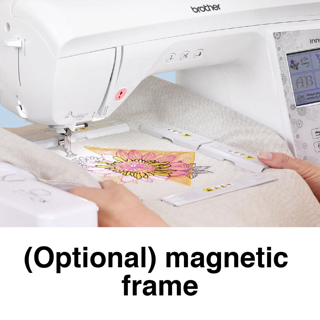 The Brother Innov-is V3SE is a dedicated embroidery-only machine built for professionals and passionate hobbyists. With 227 built-in embroidery designs and 17 fonts (14 alphabet + 3 Japanese), it offers endless opportunities for creativity. The expansive 300 x 200mm embroidery area is perfect for larger projects, while the advanced features such as on-screen editing, jump stitch trimming, and an LED needle pointer ensure precision and ease of use. The extra-large colour LCD touchscreen makes navigation and editing effortless, while USB connectivity allows you to import additional patterns. With a top embroidery speed of 1,050 stitches per minute, the V3SE combines speed, space, and technology for professional-quality results.
